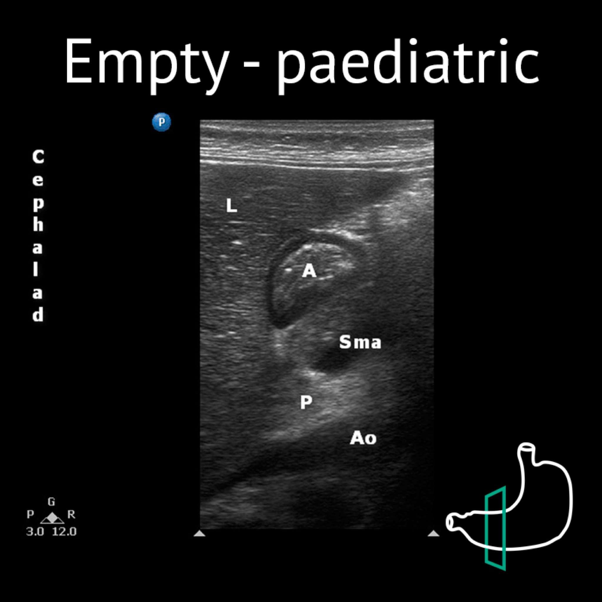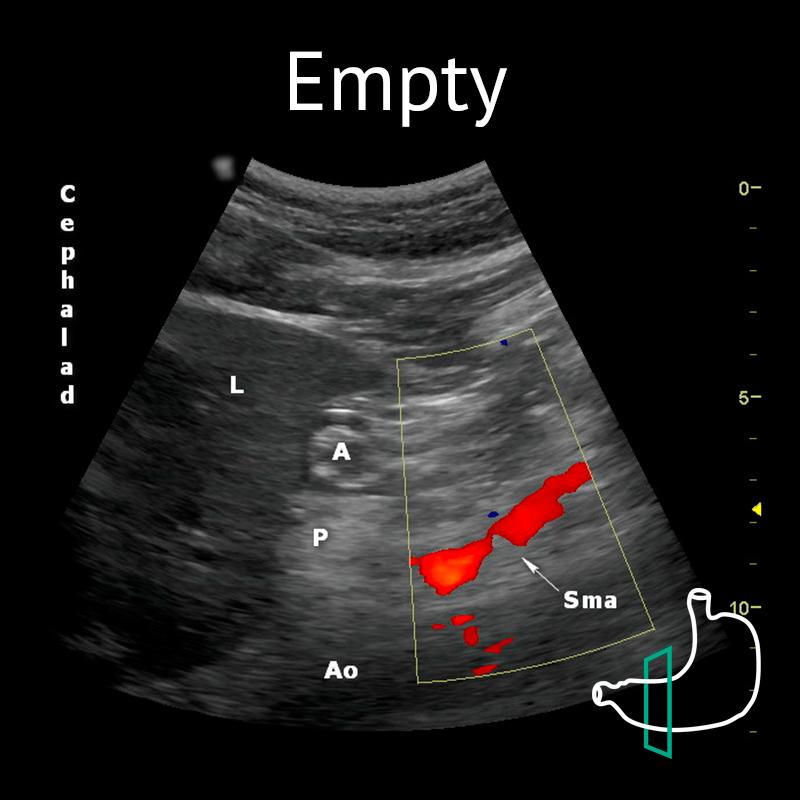 A: antrum; Ao: Aorta; L: liver; P: pancreas; Sma: superior mesenteric artery