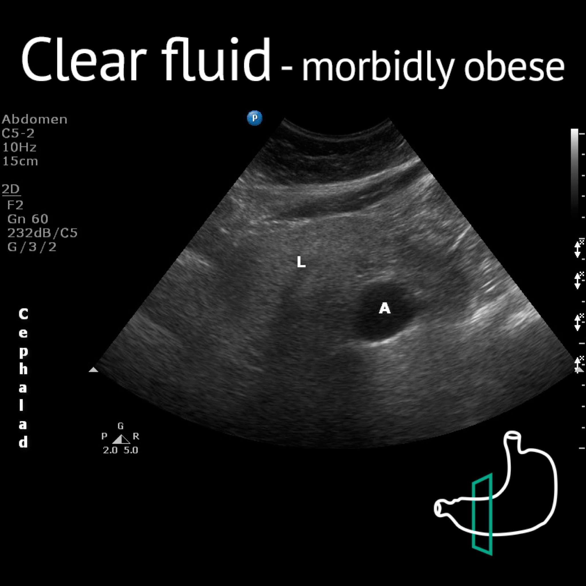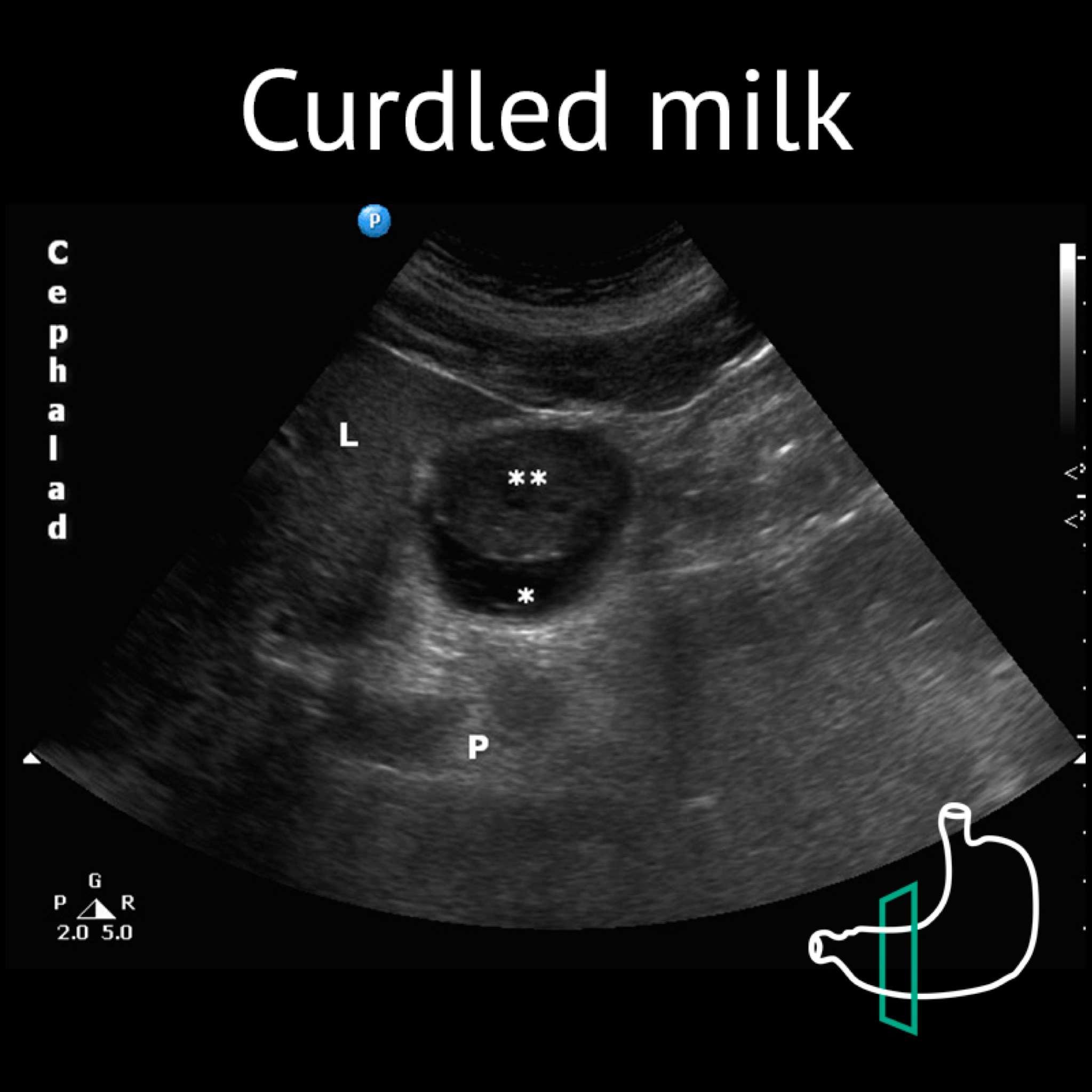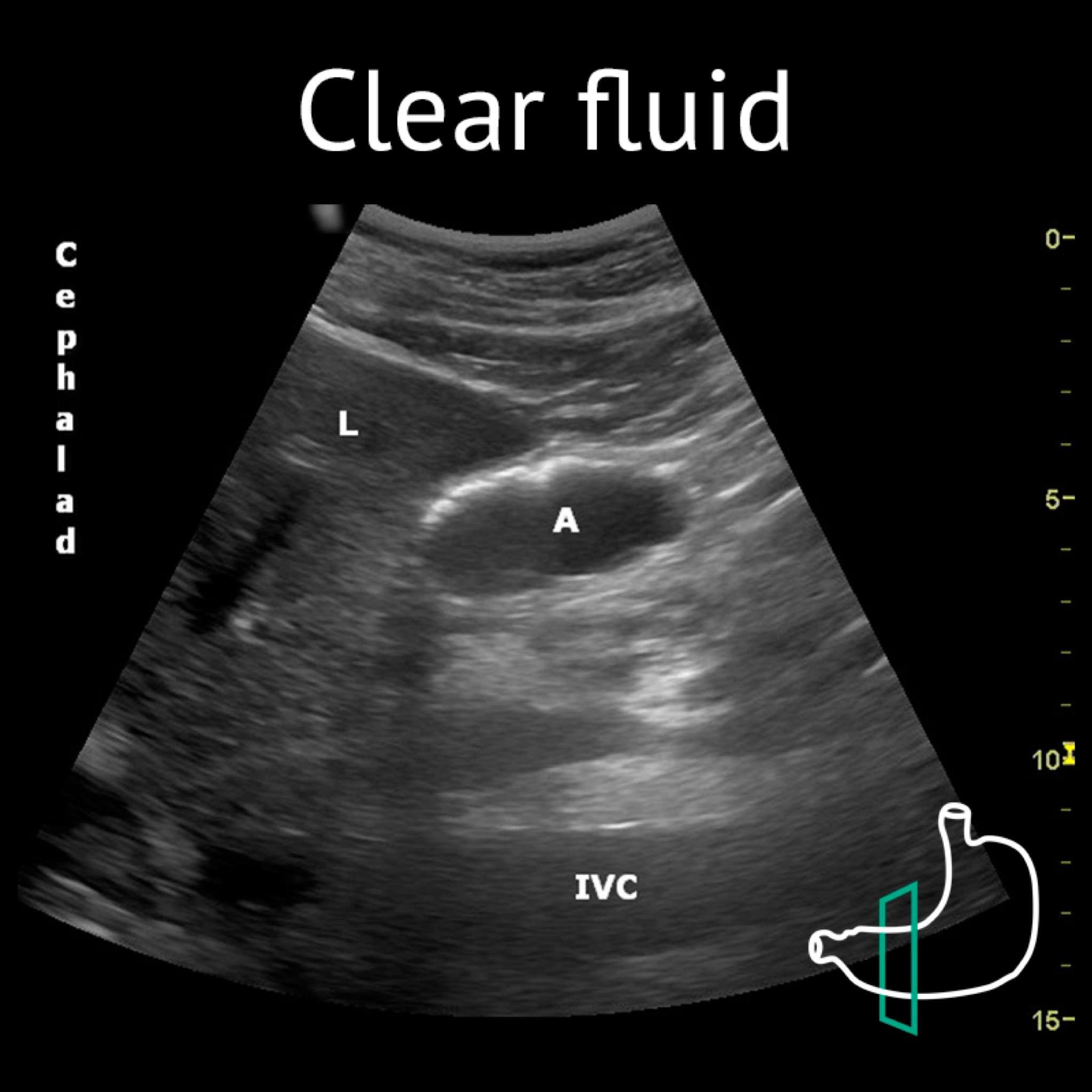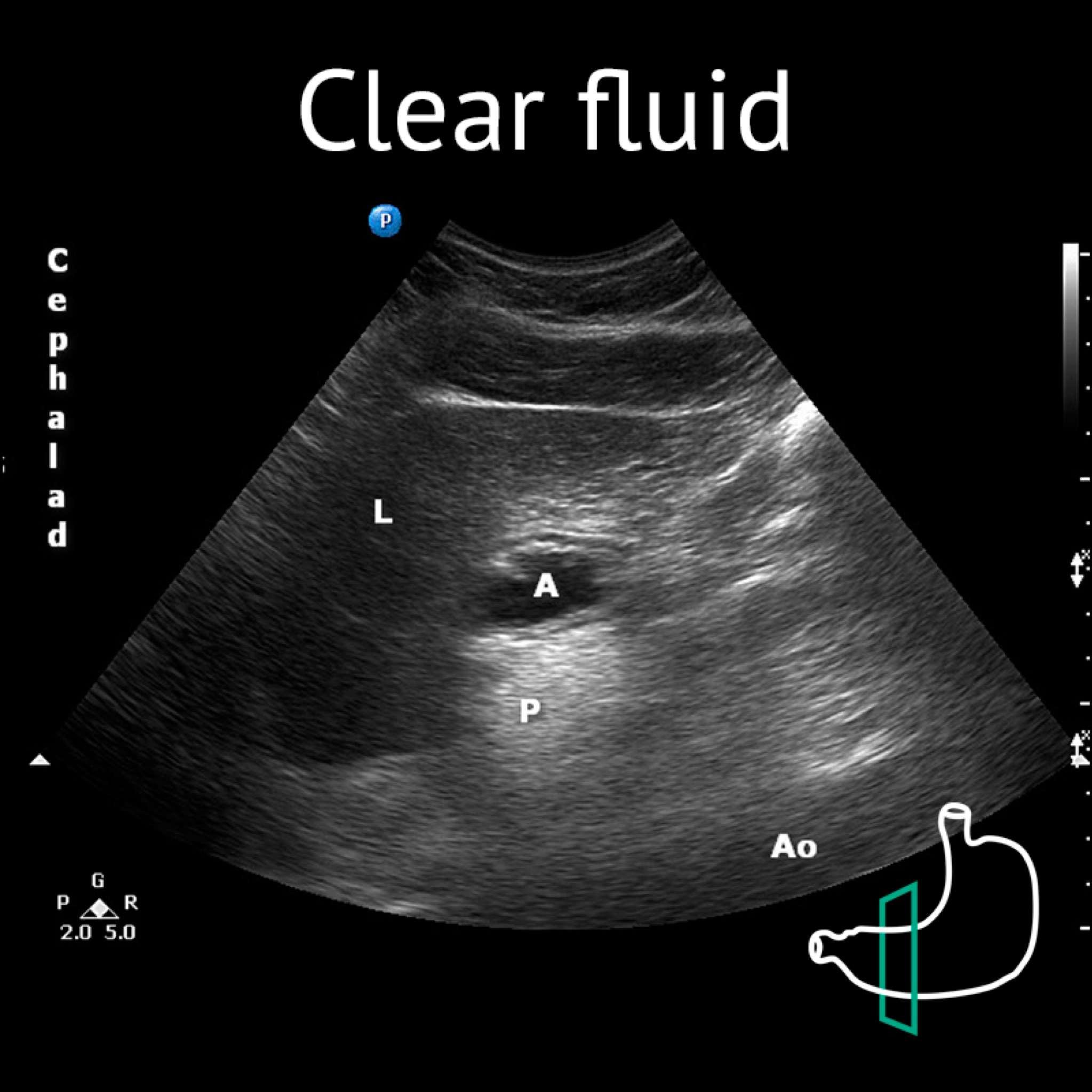 A: antrum; Ao: aorta; L: liver; Sma: superior mesenteric artery; * clear fluid